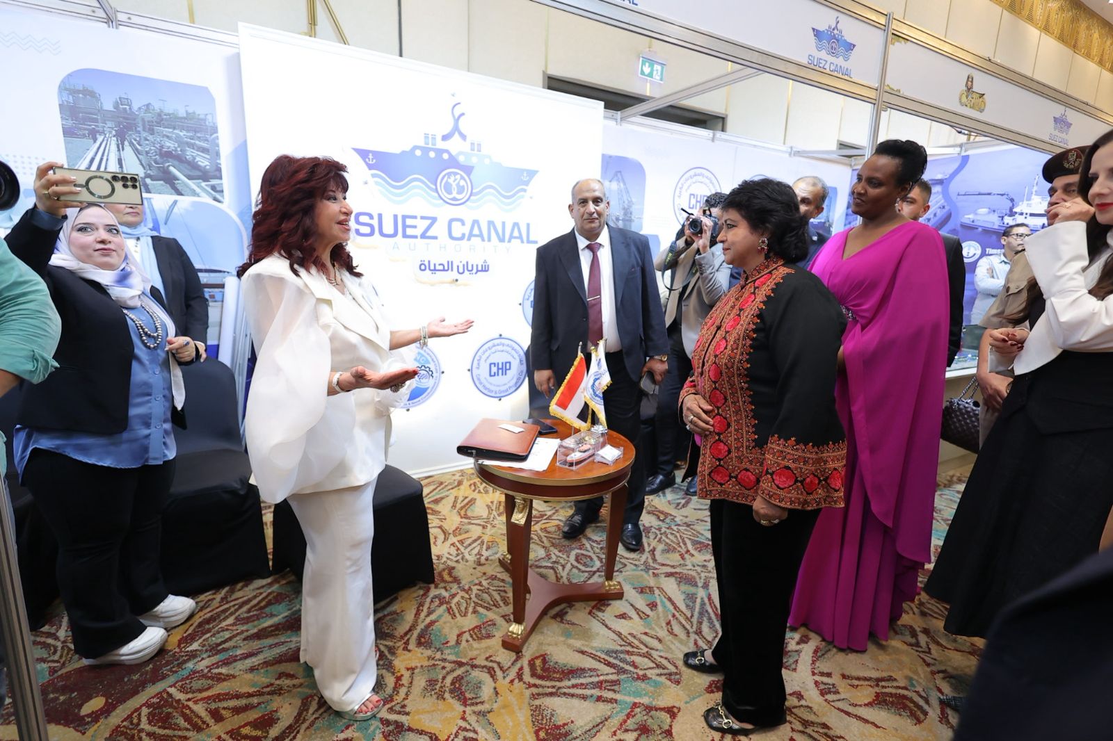 وافتتح المعرض كل من د. هدى يسى رئيس المؤتمر، والسبدة تمارا فوتيتش، حرم رئيس جمهورية صربيا، و السيدة سوزان مهويزي نائبة أولى  رئاسية  عن فخامة السيدة جانيت موسيفيني حرم رئيس أوغندا، والسيدة أمينة غريب فقيم  رئيس جمهورية موريشيوس سابقا  ، وممثلا عن جامعة الدول العربية – الإدارة الاقتصادية المستشار أحمد الجار الله ، وم. مارجريت صاروفيم نائبة  عن وزارة التضامن الاجتماعي ، ووزارة الشباب والرياضة.