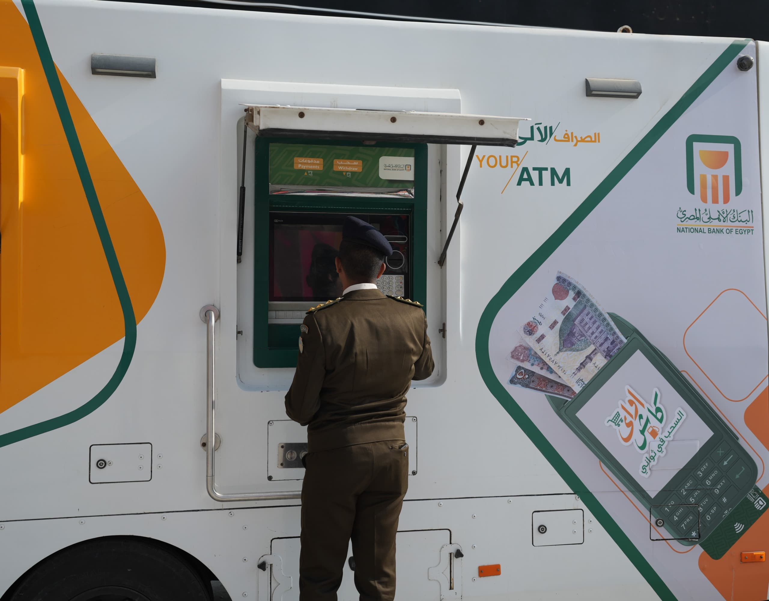 قدم البنك الأهلي المصري، خدمة سيارات الصراف الآلي المتنقلة (Mobile ATM) للزوار في معرض “إيديكس 2025” لتوفير خدمات السحب والإيداع وتغيير العملة للزوار والوفود الأجنبية.