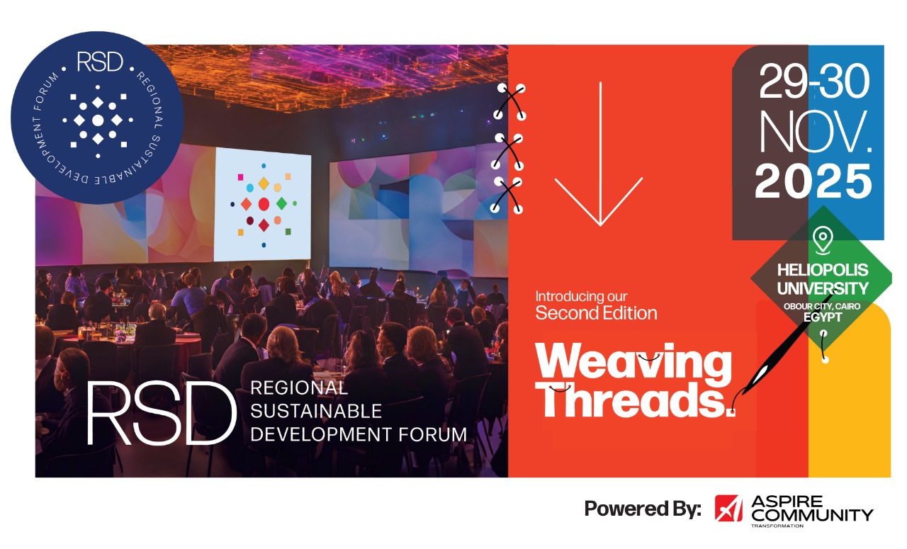 وقالت “أسباير – Aspire للتنمية المجتمعية، والتابعة لـ”أسباير للاستشارات الدولية” إن انطلاق النسخة الثانية من المنتدى الإقليمي للتنمية المستدامة “Regional Sustainable Development Forum (RSD)” ، سيكون خلال الفترة من 29 إلى 30 نوفمبر 2025، بجامعة هليوبوليس للتنمية المستدامة بطريق بلبيس، وذلك بحضور وزاري رفيع المستوى إلى جانب مشاركة نخبة من ممثلي الجهات الحكومية والخاصة، والمنظمات العربية والإقليمية والدولية المعنية بقضايا التنمية المستدامة.