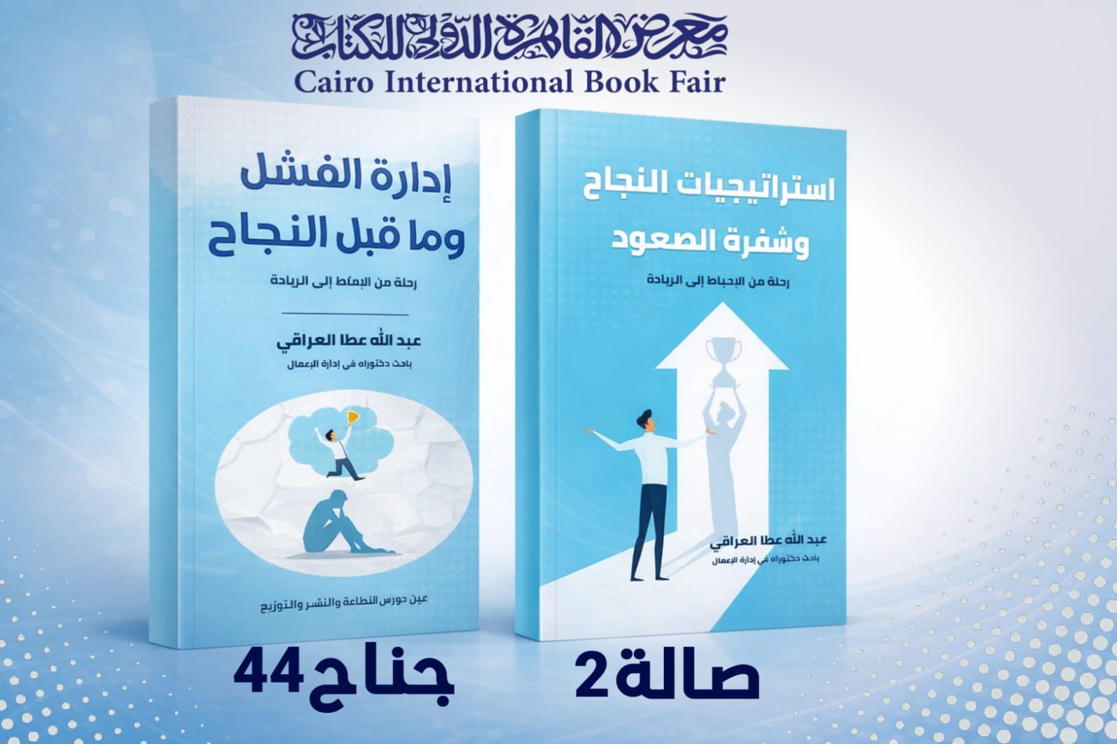 تشهد فاعليات معرض القاهرة الدولي للكتاب فى دورته السابعة والخمسين اليوم حفل توقيع كتابين جديدين فى التنمية البشرية للدكتورعبدالله عطا العراقي استشارى إدارة الأعمال والتسويق ضمن سلسلة كتب بعنوان :(رحلة من الاحباط إلى الريادة).
