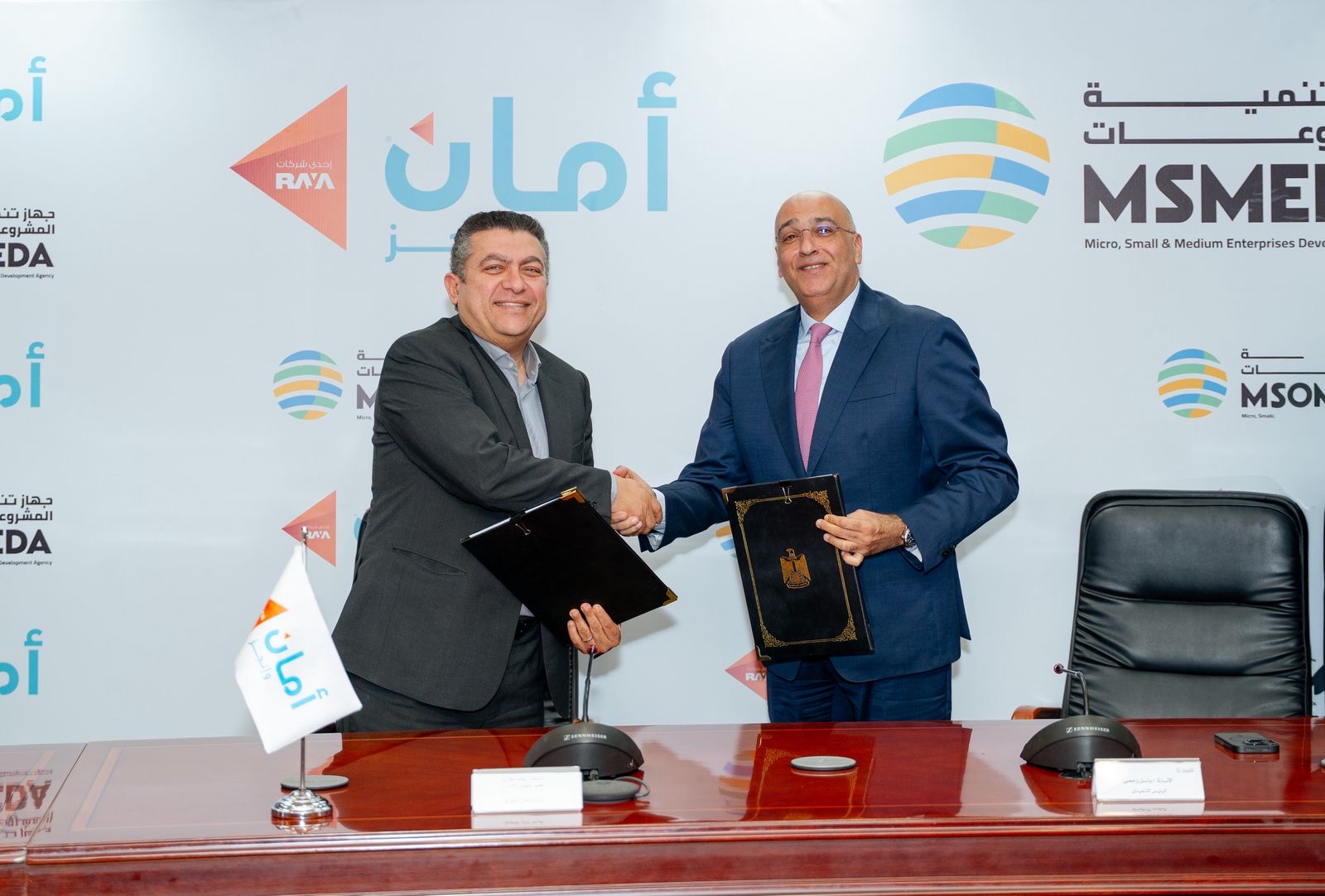 وقع الاتفاق باسل رحمي الرئيس التنفيذي لجهاز تنمية المشروعات، والمهندس حازم مغازي الرئيس التنفيذي المشارك لقطاع الأعمال والشؤون التجارية في شركة أمان القابضة، إلى جانب أيمن بسيوني رئيس القطاع المالي بالشركة، وذلك بحضور محمد مدحت نائب الرئيس التنفيذي للجهاز، ومحمد أسامة رئيس القطاع المركزي لتمويل المشروعات المتوسطة والصغيرة بالجهاز، وعدد من قيادات الجهاز والشركة.