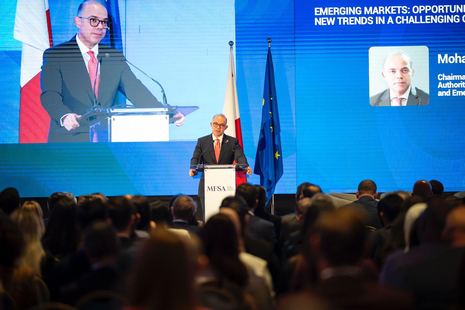 رئيس الرقابة المالية يلقي الكلمة الرئيسية في المؤتمر العام لهيئة الخدمات المالية بمالطا ويطرح رؤية مستقبلية لأسواق المال الناشئة