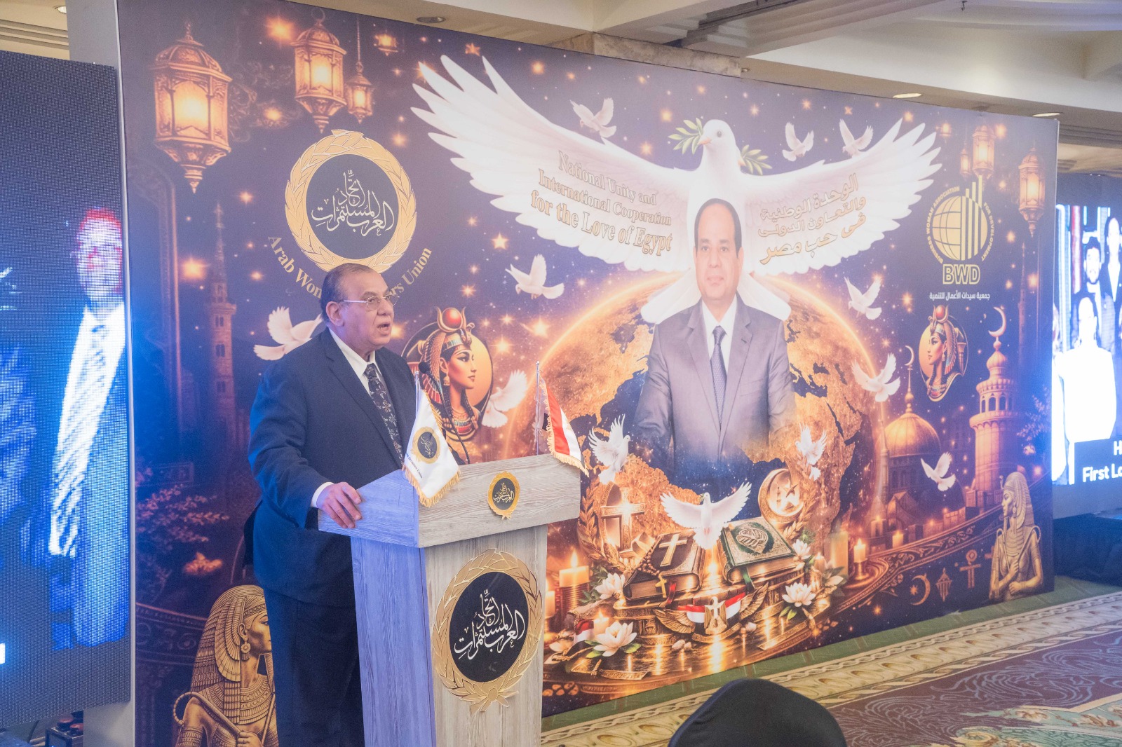 وفي رسالة أخرى، توجه طلعت عبد القوي، برسالة شكر للدكتورة هدى يسى ، من القلب التي استطاعت أن تجمع القيادات، واصفا أنها من الشخصيات الداعمة للاستثمار المحلي والعربي والإفريقي.