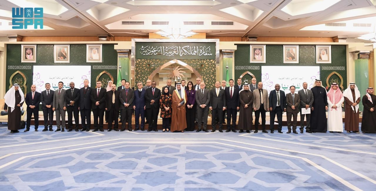 وألقى السفير الحصيني كلمة بهذه المناسبة، أوضح فيها أن المملكة ترجمت اعتزازها باللغة العربية إلى منظومة عمل مؤسسي مستدام، ففي ظل رؤية المملكة 2030، أحدثت القيادة الرشيدة -حفظها الله- نقلة نوعية كبرى بتأسيس مجمع الملك سلمان العالمي للغة العربية، مشيرًا إلى أن المجمع تحوّل إلى مرجعية دولية رائدة لخدمة “لغة الضاد”، طالت أكثر من (60) دولة، إضافة إلى تدشين منصات رقمية تخدم الناطقين بأكثر من عشرين لغة، وتكريم الأفراد والمؤسسات والمبادرات الداعمة للغة العربية وعلومها محليًّا وعالميًّا، لتبقى تلك الجهود شاهدة على أن اللغة العربية، بفضل جهود المملكة المخلصة، تجاوزت مرحلة التدوين والحفظ إلى مرحلة التمكين والتطوير.