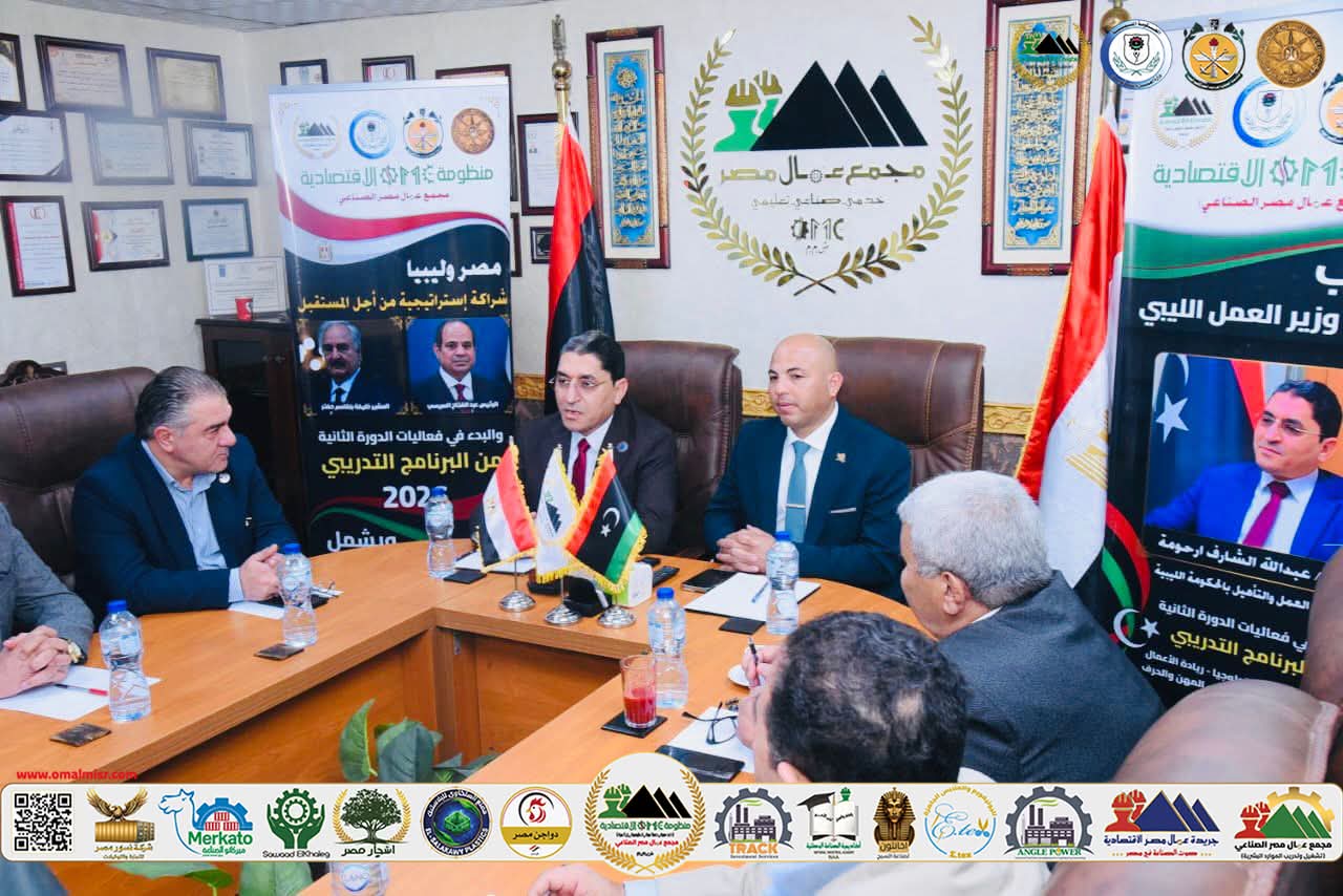عقد مجمع عمال مصر بالمنطقة الصناعية في السادس من أكتوبر، أمس الثلاثاء، اجتماعاً موسعاً مع وزير العمل والتأهيل الليبي الدكتور عبدالله الشارف أرحومه، لإطلاق المرحلة الثانية من برنامج التدريب المشترك المنبثق عن مذكرة التفاهم الموقعة بين الطرفين في مايو 2024.