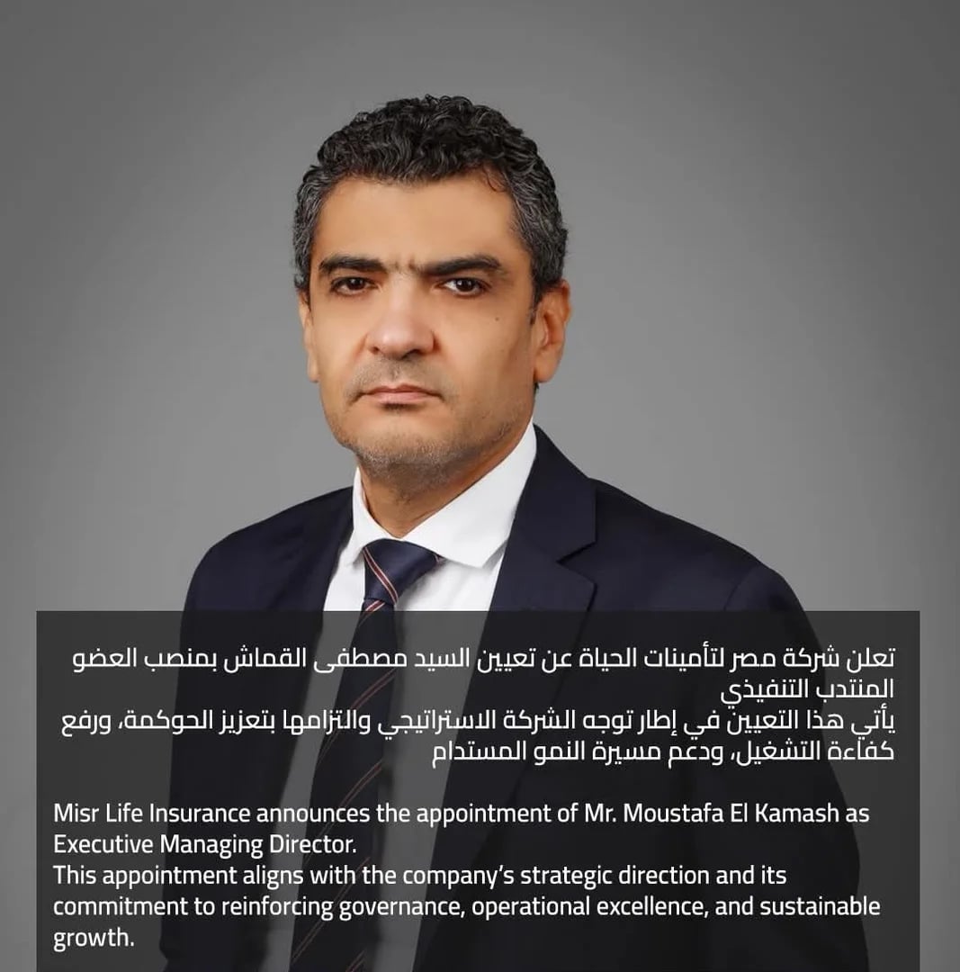 أقرت الجمعية العمومية لشركة مصر لتأمينات الحياة، إحدى الشركات التابعة لمجموعة مصر القابضة للتأمين، تعيين مصطفى القماش رئيسًا تنفيذيًا وعضوًا منتدبًا للشركة، في خطوة تستهدف دعم الاستقرار الإداري وتعزيز كفاءة الأداء خلال المرحلة المقبلة.