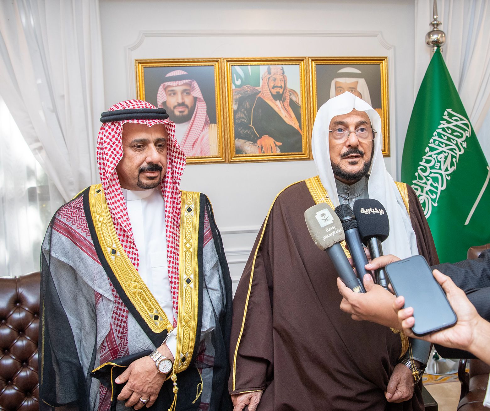 وجرى خلال اللقاء بحث عددٍ من الموضوعات ذات الاهتمام المشترك، واستعراض سبل تعزيز التعاون بين الجانبين في المجالات المتعلقة بخدمة الإسلام والمسلمين، بما يعكس متانة العلاقات الأخوية والتاريخية الراسخة التي تجمع بين المملكة العربية السعودية وجمهورية العراق، وما تقوم عليه من وشائج المحبة والأخوة.