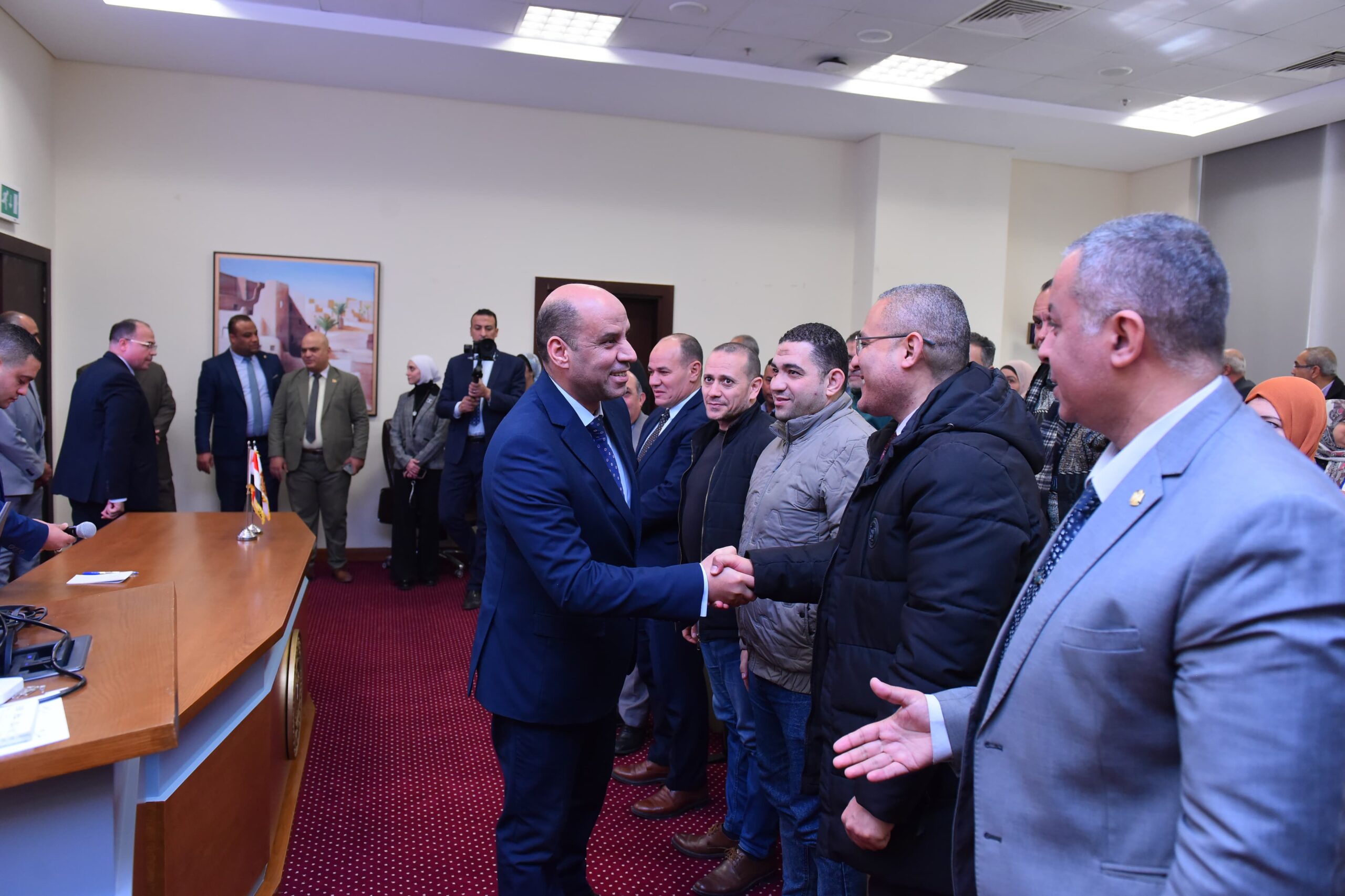 شهد حسن رداد، وزير العمل، اليوم الأربعاء بمقر الوزارة بالعاصمة الجديدة، فعاليات توزيع الدفعة الأولى من أجهزة التابلت على مفتشي العمل.